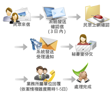歡迎您提供我們寶貴意見,本署民意信箱處理流程如圖。