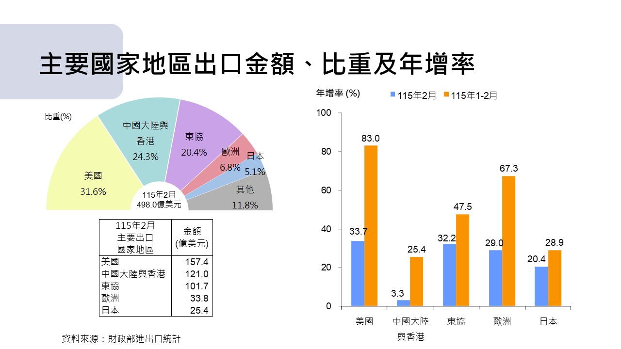 2月對五大市場出口年增率分別為美國33.7%、東協32.2%、歐洲29.0%、日本20.4%及中國大陸與香港3.3%。.JPG&cache=31536000)