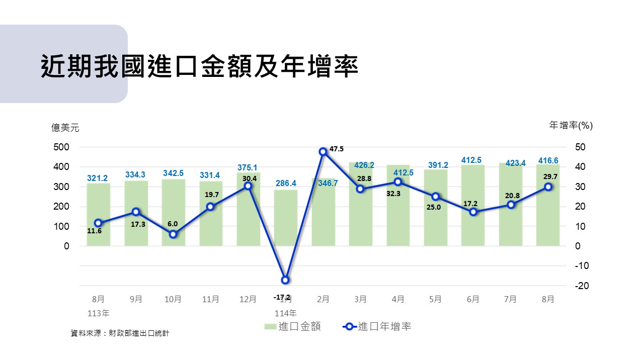 2.進口:8月進口416.6億美元,年增率29.7%;累計1-8月進口3,115.4億美元,年增率21.7%。.JPG&cache=31536000)