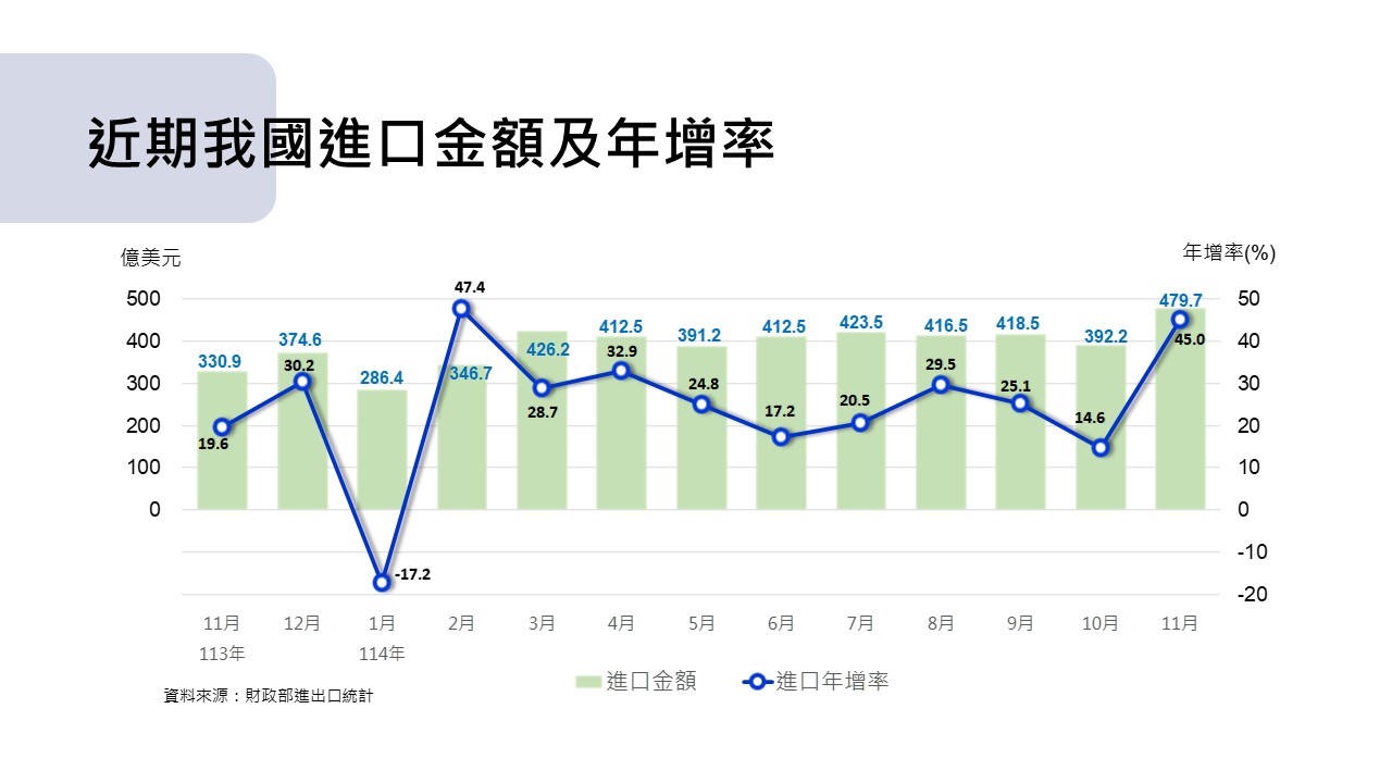 2.進口:11月進口479.7億美元,年增率45.0%;累計1-11月進口4,406.0億美元,年增率23.5%。.JPG&cache=31536000)
